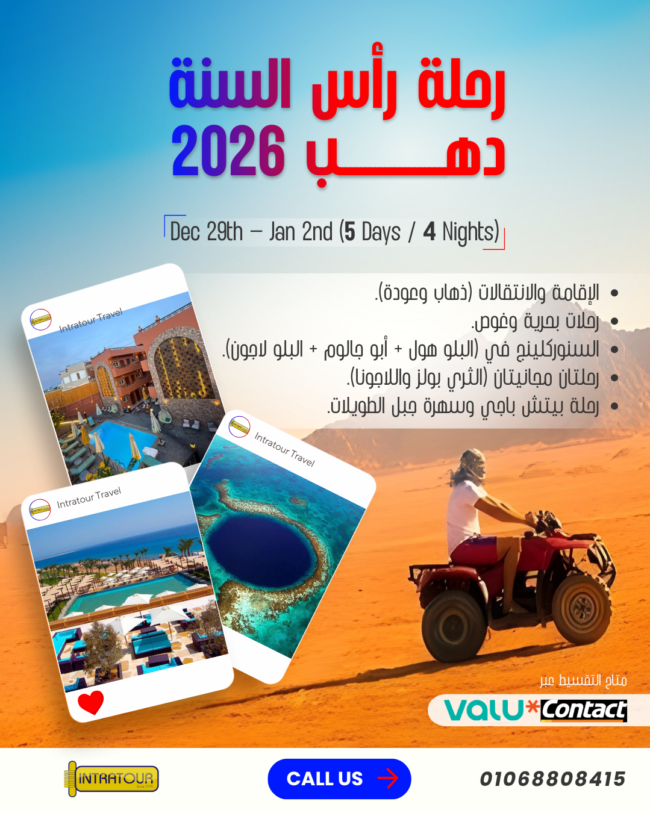 – برامج 8ايام /7ليالي تاريخ الرحله 28 يناير و22 فبراير.